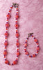 This colorful trio contains lamwork beads made of Murano glass paired with Swarovsky crystal of fuchsia ABX2 and sapphire AB X2. Sold as a set. Necklace – 17” L and Bracelet 7 1/2 ” L -