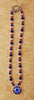 This necklace is destined to draw attention with its lampwork pendant containing a cobalt blue and opaque white star. Swarovsky crystal of fushia AB X2, clear, and cobalt accompany the centerpiece which is joined with a sterling silver toggle clasp in the shape of a heart. 19”L