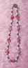 Czech pressed Camillia flower and green leaf beads grow amongst a strand of Swarovsky crystal beads of milky white, fuschia AB, and grass green. Closed with a sterling silver toggle clasp. 18” L