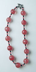 Quartz catches the eye in a show of radiant rose and infinite facets. Accented with Swarovski crystal of padparaduscha and jet and a sterling silver toggle clasp. 18” L